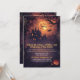 Este convite para festas de Halloween apresenta um design atmosférico e assustador com uma casa assombrada como elemento central. A casa assombrada, com sua aparência sombria e dilapidada, fica em uma colina distante. Uma lua amarela grande e brilhante lança uma luz inquietante sobre a cena, criando um contraste dramático com o fundo escuro e sombrio. Ao redor da casa estão velhas e assustadoras árvores com galhos torcidos, somando-se ao ambiente assombrado. Alguns morcegos atravessam o céu, melhorando a sensação estranha e sobrenatural da cena. No canto inferior direito, um sinistro Jack-o-lanterno com um sorriso ameaçador adiciona um toque adicional de spookiness de Halloween. O esquema de cores apresenta matizes roxos ricos que se misturam num amarelo brilhante no meio, criando um pano de fundo impressionante e atmosférico que destaca a casa assombrada e os elementos do Dia das Bruxas. Na parte superior da frente, a legenda diz: "Chamando todos os arrepios, critérios e criaturas da noite!" O texto é ousado e estranho, concebido para se destacar contra o fundo roxo e amarelo e captar o tema assustador do convite. Abaixo da legenda, há espaço para detalhes personalizáveis como data, hora e local da parte, fazer fácil personalizar o convite para seu evento. Na parte inferior da frente, há uma linha extra para informações de RSVP, onde você pode incluir detalhes de contato e um prazo de resposta. As fontes e cores podem ser ajustadas para se adequarem ao seu estilo desejado. O verso do convite continua com o mesmo fundo de gradiente roxo e amarelo, apresentando uma versão sutil e desbotada da casa assombrada, árvores e Jack-o-lanterno, mantendo o tema sombrio. Há espaço extra no verso para texto adicional, onde você pode incluir mais instruções ou notas como "Os figurinos são um imperativo!" ou "Junte-se a nós por uma noite de diversão terrível!" Este design combina visuais assombrosos com detalhes práticos, fazer-o perfeito para dar o tom para uma comemoração memorável do Dia das Bruxas.