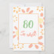 convite de aniversário 80 para ela com um padrão floral simples num fundo branco. Convidado de festa engraçado e motivacional. As flores são cor-de-rosa e amareladas.