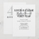 Celebrate their big 4-0 in style with this modern, minimalist birthday invitation featuring a bold “Loud & Clear” headline in a striking serif font, a playful script name, and a matching “Forty Year” statement below. The soft white background keeps the look clean while a large grey “40” subtly anchors the design for a fun yet sophisticated vibe. All-black typography and crisp serif party details ensure easy readability and a sleek finish. The back side repeats the bold grey “40” with the cheeky phrase “Loud & Proud” for an extra smile. Every detail—from name and date to address and RSVP—is fully customizable, making it effortless for family members organizing the celebration.