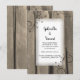 Ponha o tom para sua cerimônia de casamento do rancho com o charmoso Campo de Madeira e Flores Casando Salve o Anúncio de Data. Esta nupcial rústica casual, porém clássica, conserva o cartão de ponto com uma fotografia de fazenda de tons sépia quentes de madeira intacta com flores e espirais enfeitando os cantos. Inpo perfeito para o evento informal de comemoração do celeiro.