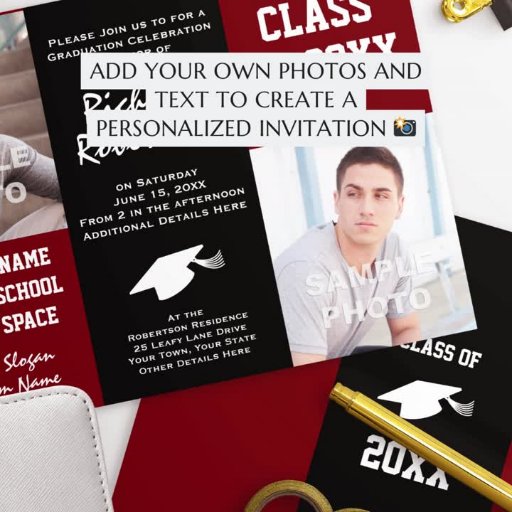 Um simples design elegante em azul e branco para a graduação ou festa de aniversário de um atleta. Acessa basquete, jogadores de futebol ou beisebol. Adicione facilmente suas próprias fotos e personalize com a posição tocada e o número uniforme/camisa. Todas as cores de fonte e fundo neste design são personalizáveis para que você possa corresponder exatamente às suas cores escolares.