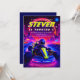 With its bold yellow typography and electric pink, purple, and blue tones, this invite is perfect for birthday parties at go-kart tracks, arcades, or gaming centers. The "Start Your Engine" tagline sets an exciting tone for a high-energy "Steven's" bash!