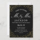 Na moda e convite de festa de noivado de classe que diz "o futuro Sr. e Sra." em um roteiro formal elegante. sotaque por dourado faux confetti polka-dots. Personalize os detalhes usando as modelos de texto fornecidas.