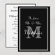 Um Futuro Elegante, Sr. e Sra. Monograma, Nome do Convite Inicial De Casamento. Design preto e branco. Personalize-o com os nomes da noiva e do noivo e os detalhes do casamento. Você pode personalizar a(s) fonte(s) com o botão EDIT para corresponder exatamente às suas cores. Vem com envelopes brancos de vazio. Para acessórios correspondentes, veja toda a nossa coleção 'mr mrs' na nossa loja.