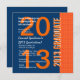 Este design azul e alaranjado é uma maneira elegante de convidar seus convidados a uma festa de formatura. Todo o texto é totalmente customizável. Você pode mudar a cor de texto para um olhar diferente. Embora este design seja caracterizado no papel básico, eu igualmente recomendo o papel metálico hued do gelo, que dará a seus convites um shimmer e um brilho festivos.
