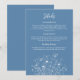 Esta placa de gabinete azul e branca empoeirada fornece todos os detalhes para seus convidados. O guião branco arrojado e as flores brancas criam um tema elegante de vassoura para o dia do seu casamento. Todas as informações podem ser personalizadas e um código QR no verso está disponível para dar aos seus convidados a capacidade de ver mais informações no seu site