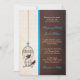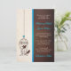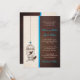 Estes convites para o casamento apresentam uma fanática jaula de pássaros com espirais e um coração azul teal, e dois pássaros bonitos, em marrom chocolate, pendurados contra um marfim, papel texturizado com letra esmaecida. Uma fita azul brilhante e brilhante separa uma barra lateral marrom de chocolate, que contém a formulação de convite para o casamento em marfim e chalé. O texto do convite, em scripts alternados e fontes de serif clássicas, é completamente personalizável.