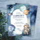 Space Galaxy First Trip Around the Sun Birthday Invitation apresenta ilustrações de aquarela de espaço giro em um fundo pintado estrelado.
