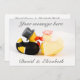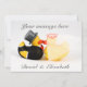 Noiva e patos de borracha de noivo se beijando. Convite de casamento ou cartão que pode ser personalizado com seu próprio texto, nomes, data e imagens.