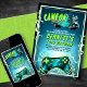 Seu jogador nivelou! Este design de aniversário de caminhoneiros de jogos tem um estilo dramático com relâmpagos, um barramento de jogos e um controlador de console para definir o palco para uma celebração de caminhoneiros de jogos de excelente. O esquema de cores do verde limão e do lacre e as fontes ousadas são perfeitos para os jogadores de qualquer idade. Faça o download da sua cópia digital hoje mesmo para que você comece no melhor aniversário de todos os tempos!