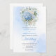 Set the tone for a stylish and unforgettable celebration with this watercolor blue and gold wedding invitation, designed around today’s most trendy wedding color palette. Featuring soft pastel, powder, light, and pale blue hydrangeas, paired with fresh eucalyptus greenery and elegant gold floral accents, this design captures modern romance with timeless appeal.