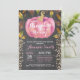 Chamada De Chá de fraldas De Abóbora. Fundo Chalkboard. Confetti Glitter Rosa e Dourada. Convite para Chás de fraldas de outono. Convidado para Chá de fraldas. Laranja rosa e preto e branco. Para mais personalização, clique no botão "Personalizar" e use nossa ferramenta de design para modificar este modelo.