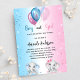 Para um chá de fraldas para um bebê e uma menina. Um plano de fundo azul branco e rosa. Decorados com balões claros e azuis, cor-de-rosa e branco e poeira brilhante. Um elefante bebê e um elefante da gaby. Personalize e adicione o nome da futura mãe e os detalhes da festa. O nome e o texto: Boy ou Girl são escritos com um estilo escrito à mão