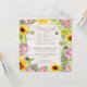 "Menina para Bee Sunflower Pink Hydrangeas Convite para chá de fraldas." Doce e rústica fazenda de fazenda com design com mamangabas sobre um fundo de madeira branca de algodão macio. Girassóis, margaridas e flores cor-de-rosa poeirenta de hidrangea, de verão, com vegetação sensual e folhas de eucalipto. Arte pintada em aquarela pela artista e designer internacionalmente licenciada, Audrey Jeanne Roberts, copyright.