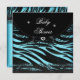 Convites Garota Chá de fraldas Azul Zebra Negra