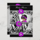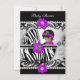 Convites Garota-chá de fraldas-branca-zebra-rosa-rosa-rosa-