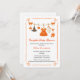 Celebre sua abóbora com essa chá de fraldas de Halloween em laranja festivo e preto. Um convite fofo assustador com abóbora e detalhes perversos, perfeito para um chá de outono.