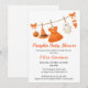 Celebre sua abóbora com essa chá de fraldas de Halloween em laranja festivo e preto. Um convite fofo assustador com abóbora e detalhes perversos, perfeito para um chá de outono.