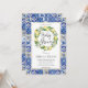 Personalize este convite para o chá de fraldas do Azure de Lemon chic com os detalhes do seu partido de forma fácil e rápida, basta pressionar o botão personalizá-lo para reorganizar e formatar o estilo e a colocação do texto. Apresentando uma coroa de limão de aquarela e um belo design de mosaico mediterrânico do azure. Itens correspondentes disponíveis no repositório! (c) O feliz Cat Studio.