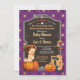 Bela peça de Halloween ou trataria o tema da abóbora bebê convite de chá com designs alegres. Perfeito para outono, época das bruxas. Receba este convite fofo agora! Tema: Halloween - truque ou trato. Estilo: Retro de safra com um toque de chic moderno. Cores: Roxo, ouro, laranja, preto. Gráficos: abóboras, sacos de tratamento, doces, estrelas douradas e quadro retro (estão disponíveis em compro outros tons de pele e sexo)