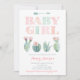 Convites de Bebê, cor-de-rosa e verde, de pastel, com cacto de aquarela / imagens de pera espinhosas