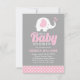 Convite para Chá de fraldas de Elefante de Cinza Rosa Bonita para uma Rapariga - Bolinhas