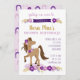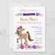 Convite de festa para um aniversário ou chá de bebê com tema de cavalo ou pônei em roxo e dourado. Entre em contato com o vendedor para opções de cores personalizadas.