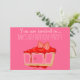 Um belo e colorido convite de aniversário, totalmente personalizável, adequado para uma criança, uma menina ou uma adolescente. Este design bonito é para uma festa de menina e tem uma foto de um bolo de morango giro contra um fundo rosa escuro - a cor de fundo é personalizável.