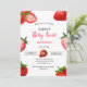 Convites à Morango Doce: Aprecie seus hóspedes com convites encantadores com morangos desenhados à mão adoráveis, As cores do pastel macio criam uma atmosfera balbuciosa, definindo o tom para um dia cheio de alegria e riso.