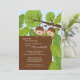 Convite para Chás de fraldas Adorable Twins, com um par bonito de gêmeos macacos, em um fundo de folha de selva. Itens correspondentes disponíveis em nosso compro. Perfeito para o rapaz, chá de fraldas de gêmeos.