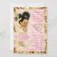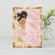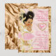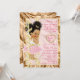 Este é um convite para chás de fraldas moderno e elegante Ribbons e Arcos Diamantes e Pérolas Garota Africana de Bebê vestindo festas cor-de-rosa e roupas de festa dourada.