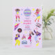 Convites Garota Groovy Roller Disco festa roxa retrô