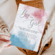 O gênero de aquarela moderna revela convite de festas com as cores rosa e azul com as cores da água com brilho dourado. O texto da tipografia diz "Boy or Girl" em letras elegantes. Perfeito para uma festa reveladora de gênero em qualquer estação.