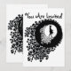 círculo dentro a círculo, e formas de folhas radiando para fora dele. 2 anéis dentro, com o dentro branco preto, e formas de folha em volta do filigre, deixam dentro um padrão preto e branco com flores. Linda silhueta vintage de uma jovem em vestido preto vintage e caminhando em dentro com folhas e flores de ornamentado.