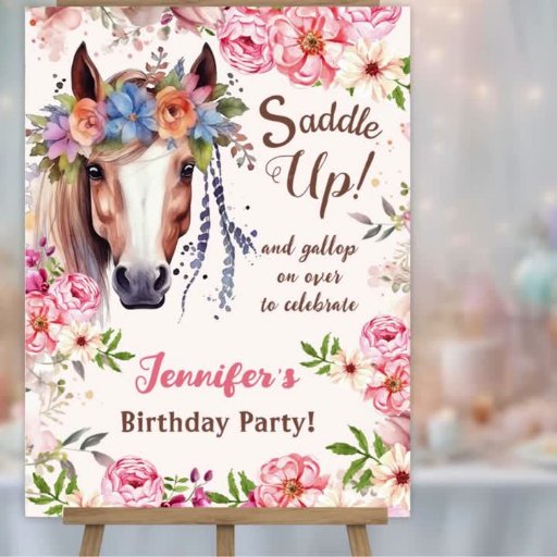 Juntem-se com o nosso convite à vaqueira Floral de 7 de Cavalo de Raparigas, Rosa, de Aniversário! 🎉 Parem com a comemoração em estilo com este adorável tema da vaquinha! Pegue o seu agora e deixe a festa do pônei começar! 🎉 🎂
