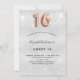 Um convite moderno, na moda e glamouroso para uma festa de aniversário Doce 16, 16. Um fundo com aspecto sujo de prata, decorado com faíscas. Personalize e adicione seu nome e detalhes da festa. O número 16 é escrito com uma fonte do estilo do balão dourado rosa, script.