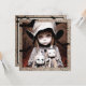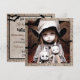 Convites de festas de Halloween assustadoras. Fantasma de menina assustadora com olhos assustadores segurando bonecas super assustadoras.