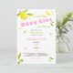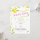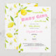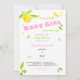 Um design de convite para chuveiros de bebês. Um design doce e fofo para uma design de menina com frutas e flores de citros e de aquarelas. Perfeito para um primavera ou um banho de bebês de verão!
