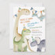 Divirta-se com nosso **Convite ao primeiro aniversario Dinossauro**, a maneira perfeita de convidar convidados para o dia especial do seu filho! Este convite A7 (5 x 7 polegadas) apresenta quatro encantadores dinossauros prontos para festa em adoráveis chapéus partidários, todos projetados em um estilo bonito e lúdico. Com uma paleta de cores suave e deliciosa de verde, bege e laranja, é ideal para comemorar seu filho de um ano, que gosta de dino. Quer você esteja planejando uma festa épica ou um pequeno encontro, este convite traz a combinação perfeita de charme e entusiasmo. Personalize-o com os detalhes do seu partido e defina o palco para um verdadeiro primeiro aniversário de dinomite!