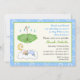 Um lindo menino adormecido borrifava azul e convite verde. Mostra um bebê dormindo numa nuvem. Há uma borda azul com círculos e pontos brancos. Alguns elementos de Trina Clark e cortesia de vectorportal.com.