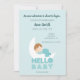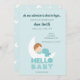 Um pequeno menino está a caminho! Uma nova aventura está prestes a começar! Vamos chá a futura mãe! Este mínimo, mas atrativo, convite para o chá azul de bebê é perfeito para a ocasião. Ele apresenta um bebê dormindo na lua em tons azuis. No verso, há um padrão de cor azul macia de coisas para bebês silhuetas: uma garrafa, um chocalho, um pacificador, um coração, e um pato de borracha. Este modelo de convite para chá de de bebê pode ser facilmente personalizado com os detalhes do seu chá de fraldas, e você pode alterar a fonte, o tamanho ou a cor de qualquer texto, com exceção de Hello Baby.