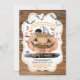 Sexo neutro / convite para chá de bebê. Abóbora-coloração aquosa e elemento Halloween com fundo de madeira rústico. Receba este convite para na moda agora! Tema: Estilo de Halloween: Vintage, Retro, Spooky, Cores Bonitas: Preto, Laranja, Gráficos Brancos: Pumpkin, doces, morcegos, aranha, madeira rústica, xadrez retrô