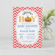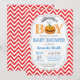 Convite para Chá de fraldas de Abóbora de Halloween. Convite para Chá de fraldas outono. Convidado para Chá de fraldas. Um Pequeno Pumpkin está a caminho. Orange e Red Chevron. Para mais personalização, clique no botão "Personalizar" e use nossa ferramenta de design para modificar este modelo.