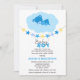 © 2013 Designs socialitas. Urso azul bonito dormindo em chá de fraldas de nuvens convidando um bebê. A design também tem um cartaz de estrela e um texto de menino pendurado na faixa. Todos os elementos de design podem ser movidos, redimensionados ou excluídos para se adequarem ao seu evento.