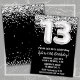 Garoto 13 preto e branco Aniversário convida meninos 13 convites de aniversário para um garoto roxo azul com escrevendo moderno de roteiro e balões de folha divertida.