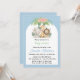 Convide amigos e família para comemorar a chegada de um menino! Este convite temático safari apresenta animais adoráveis de safari bebê em um maravilhoso fundo azul, que se adequa à chegada de um bebê na moda.