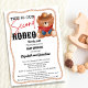 Vaqueiro Teddy Bear Rodeo Red Second Baby Sprinkle Invitation - Comemora a chegada do bebê #2 com este adorável ursinho de vaqueiro "This is our Second Rodeo" Chá de fraldas ou convite para o bebê aspersar. Apresentando um ursinho bonito vestido como um xerife oeste selvagem com uma armação de corda. Perfeito para um casal ou chá de fraldas de código. Disponível como um download digital instantâneo, edite este modelo de convite para chás de fraldas com seus próprios detalhes de evento.