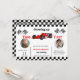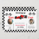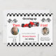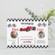 Crescendo Dois veículos velozes segundos aniversários gêmeos correndo em convites de festas de aniversários de crianças adoráveis com uma corrida de carros vermelhos. Um tema de carro de corrida para uma festa de segundo aniversário com uma ilustração de um carro de vintagem vermelho e as frases "Crescendo muito rápido."