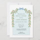 Arco de guirlanda de cítricos pintado à mão em aquarela em um fundo azul pálido Convite de chuveiro de noiva.