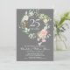 Com uma delicada guirlanda floral em aquarela, este convite de aniversário de casamento de 25 anos botânico elegante pode ser personalizado com as suas informações especiais de aniversário de prata. O verso apresenta uma guirlanda floral correspondente emoldurando as datas do seu aniversário em texto branco elegante em um fundo prateado. Concebido por Thisisnotme©